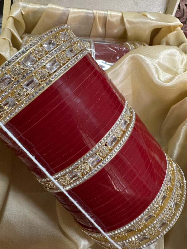 If you like to stick to the classics, then you should not miss out on the timeless Kundan Chura for your wedding day. MS Collection presents this Antique Indian bridal wedding chuda design. We are sure you’ll love this stylish twist on the classic Indian chura design!