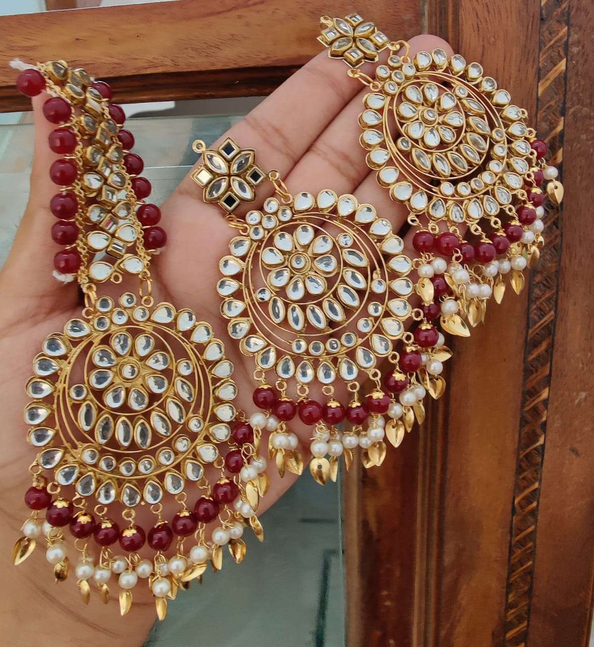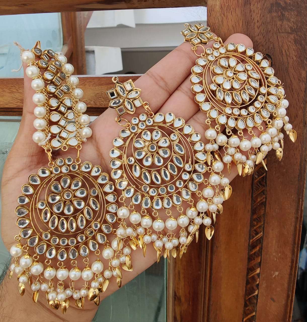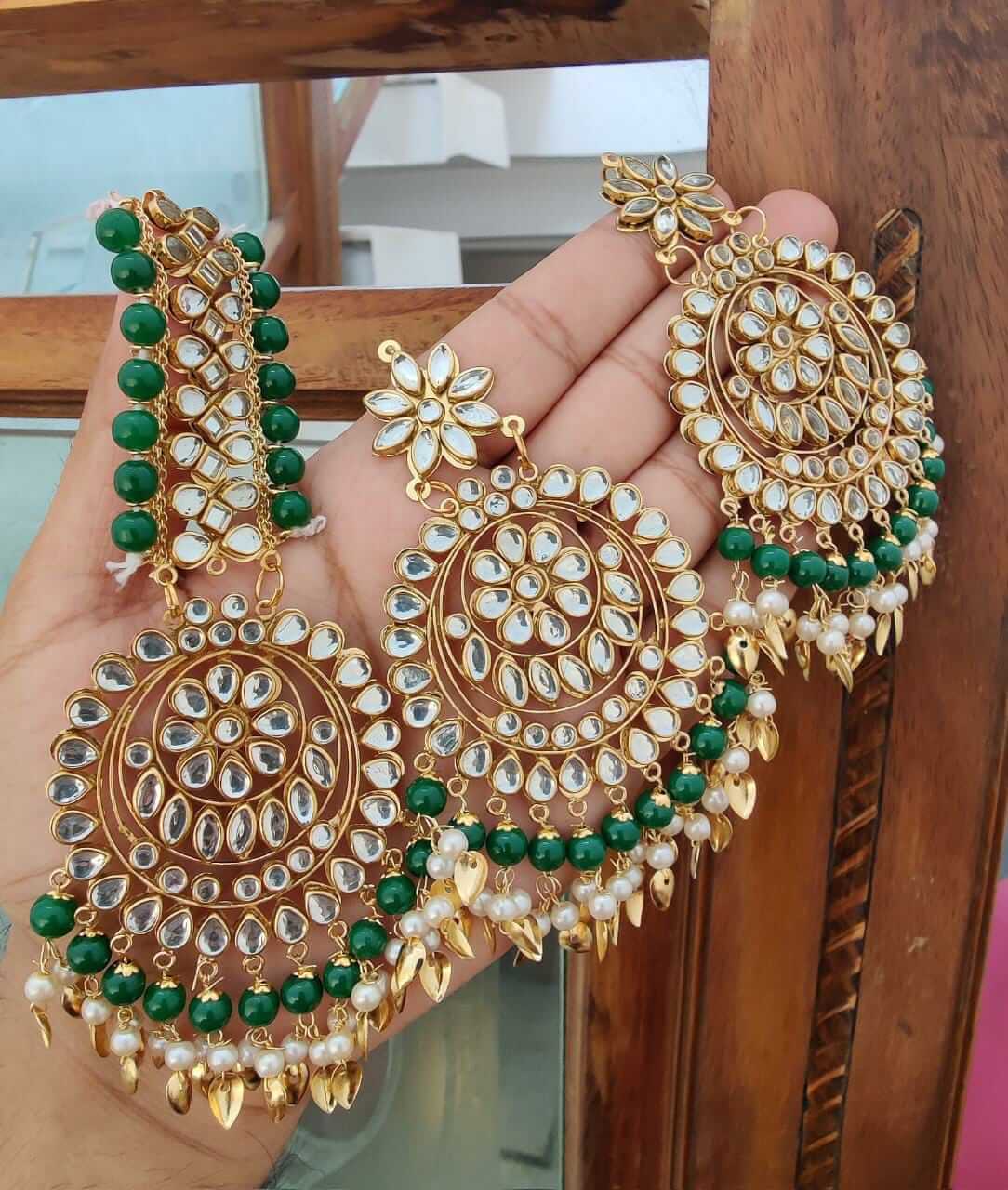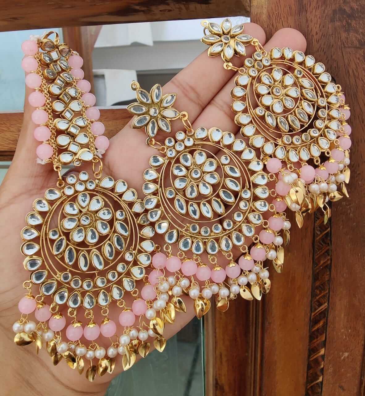 MS Collection present beautiful Kundan earring with oversized tikka.