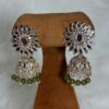 Classic oxidised jhumki earrings adorned with green beads offer a beautiful blend of tradition and style. With a vintage-inspired oxidised silver finish, they reflect Indian heritage while appealing to modern tastes. The intricate carvings and delicate design provide an antique allure, perfect for cultural enthusiasts.