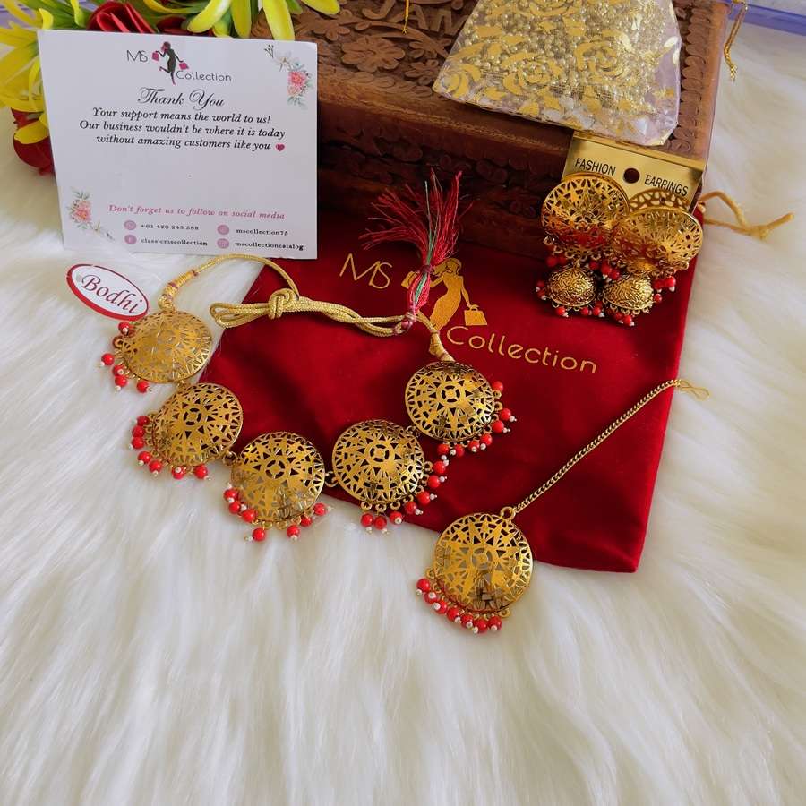 MS collection’s adorable necklace set with red beads
