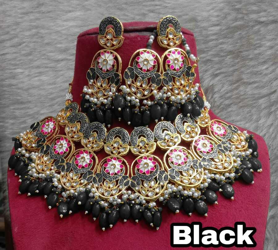 Ms collection’s alluring armeena meenakari high-quality black Kundan necklace set which adds charm and charisma to your beauty at wedding and parties.