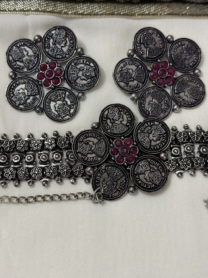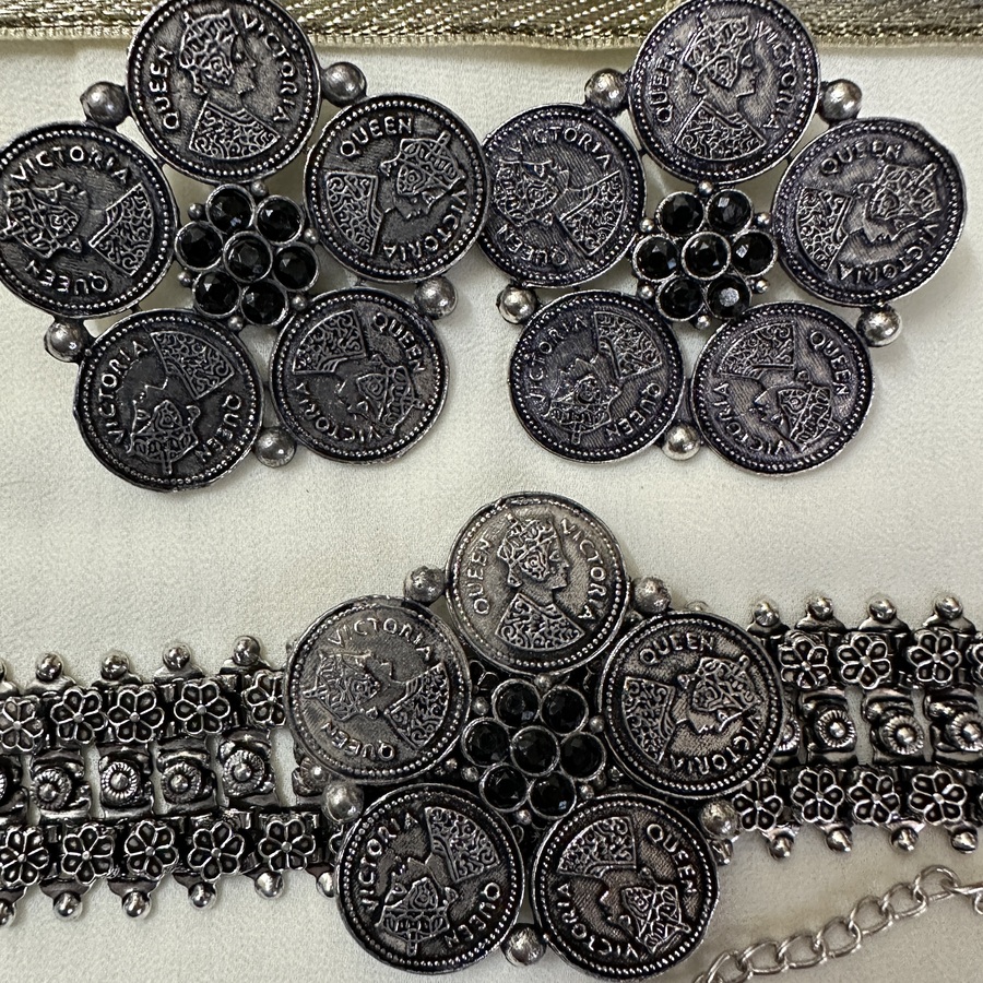MS Collection presents beaded Queen-Victoria floral oxidised jewellery comes with matching earrings that will complete your look. Style this up with your dresses even with your highly-trend lehengas.
