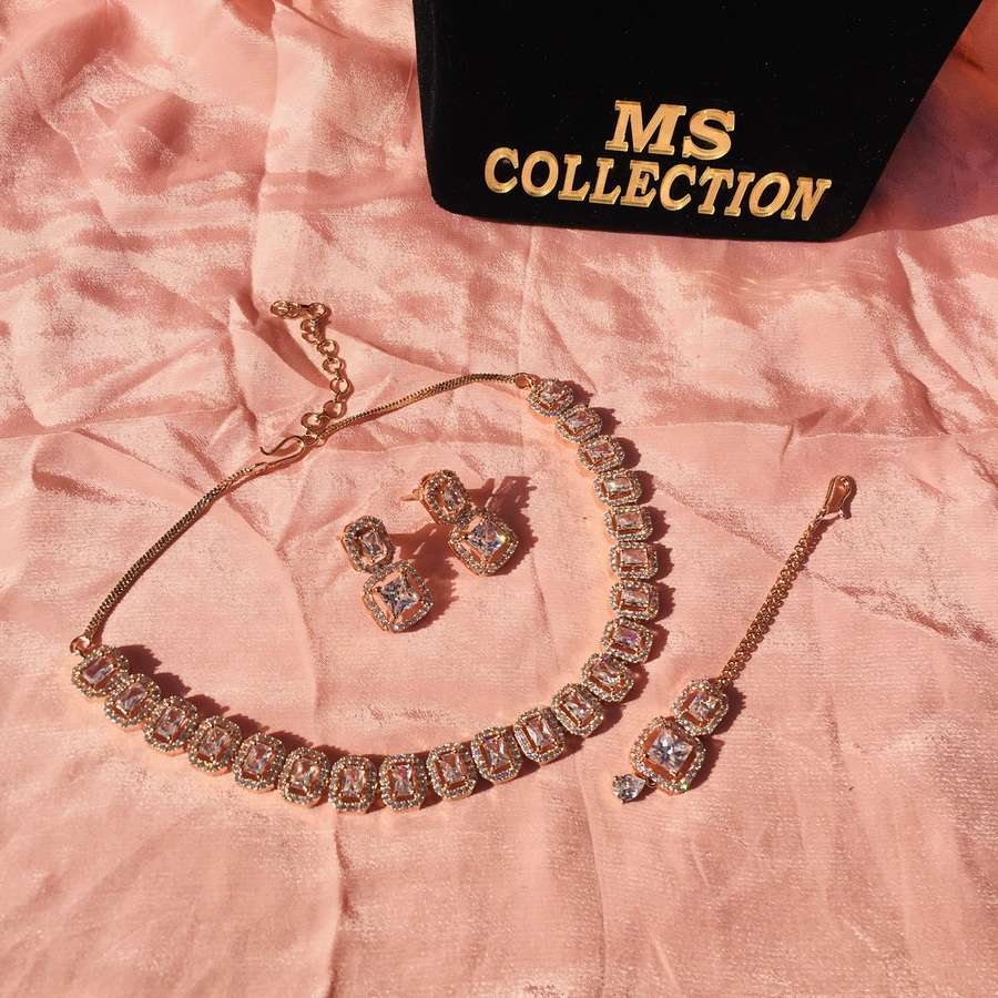 Best quality white color American diamond necklace set comes with earring and tikka.