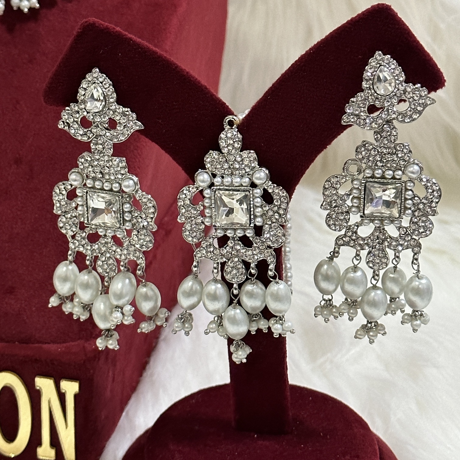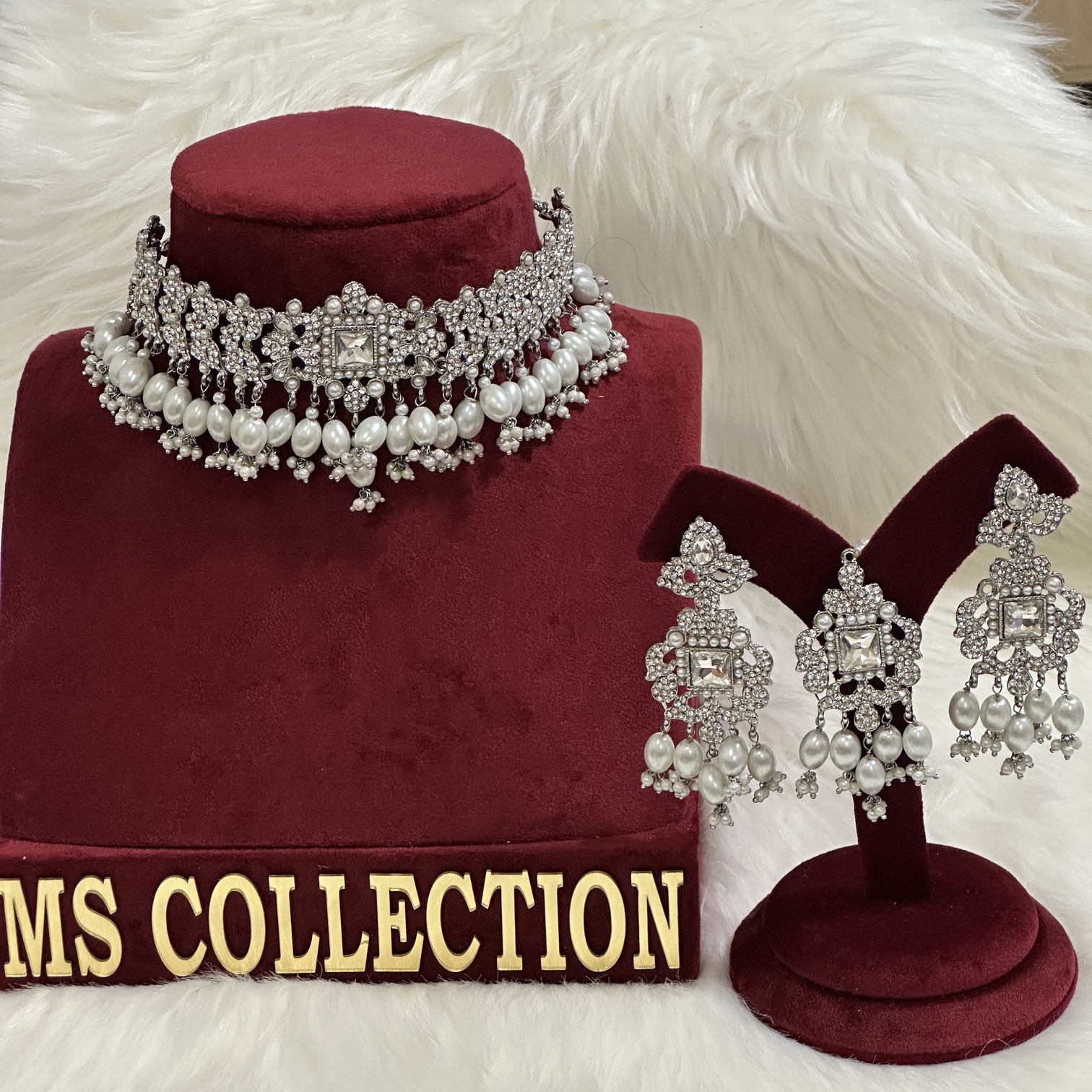 The eye-catching design, receive compliments from your family or friends by wearing this AD set with white Monalisa beads. This necklace set comes with matching tikka and a pair of earrings. This festive season makes your loved one feel special with this eye catching jewellery.