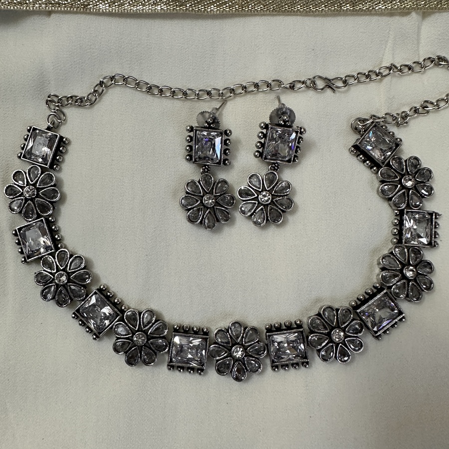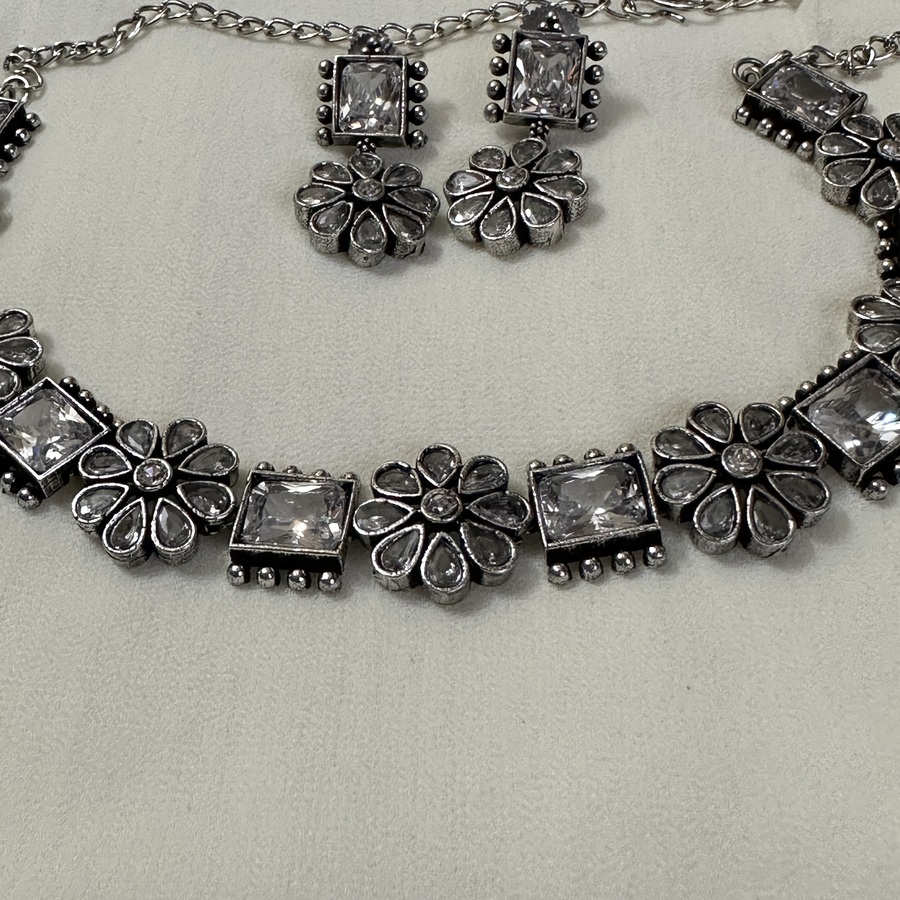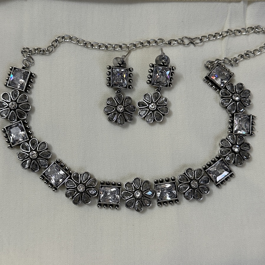 Look at this beautiful Kundan with floral design Oxidised jewellery that comes with matching earrings