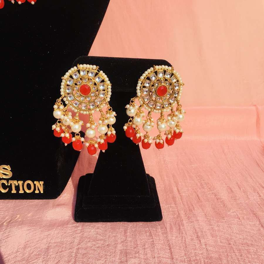 We also have an absolute range of jewellery set such as Kundan Necklace set, mirror, choker, Uncut Kundan, Meenakari etc. Check latest collection of MS Collections Glamorous Kundan necklace set with beads consists of big earrings and tikka to shop.