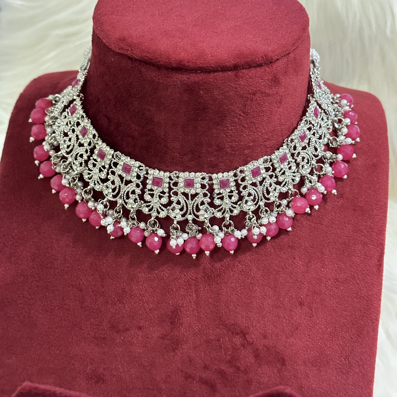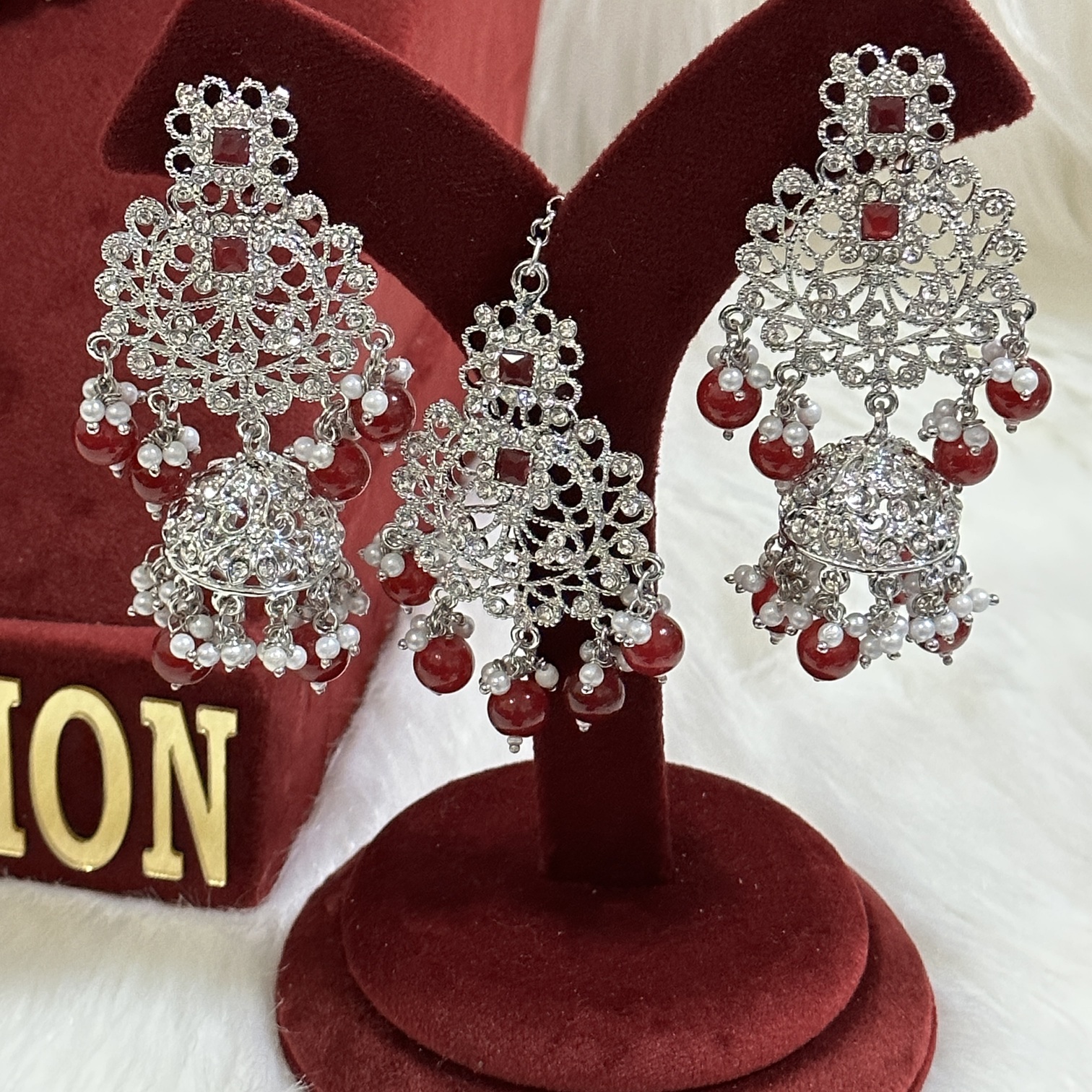 MS Collection offers AD jewellery sets for queens! Exude the royal vibes with this AD studded Sehaj Necklace set comes with jhumki earrings and mang tikka. Bring your style to a new level with this handcrafted Piece of jewellery.