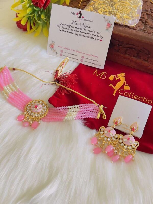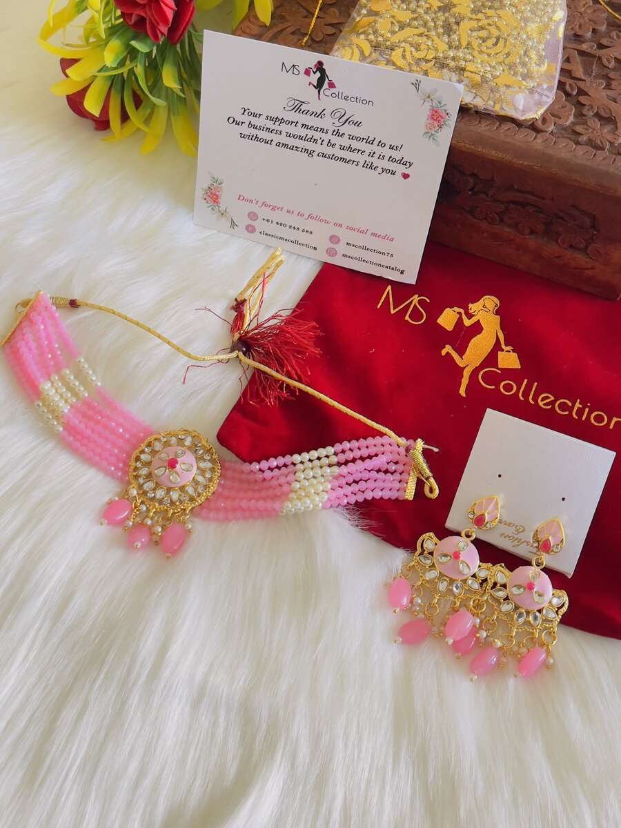 Adorn yourself with this beautiful Taapsee onyx beads Light pink color necklace set that comes with matching earrings.