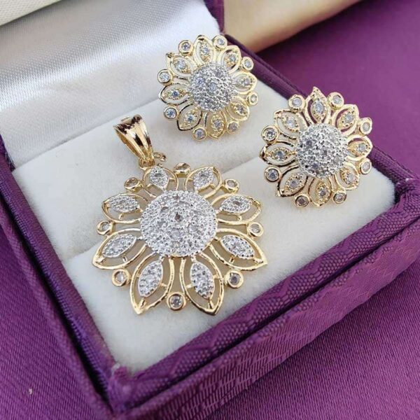 MS collections marvellous sunflower look design, most demanded diamond look with earrings and pendant set.